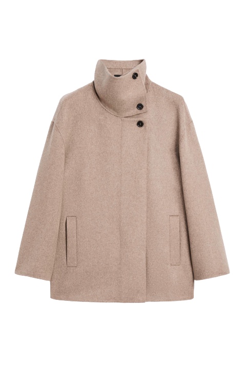 Yün Karışımlı Dik Yaka Kaban