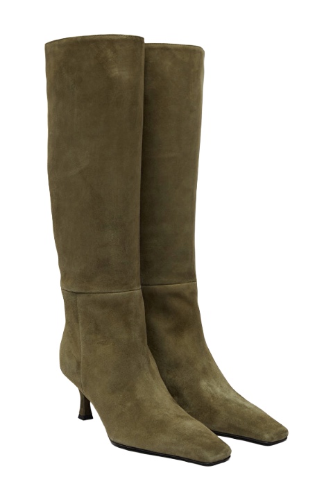 Koyu Haki Süet Topuklu Çizme
