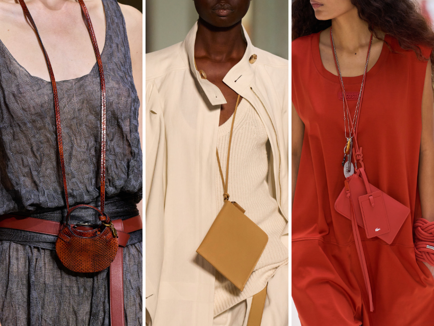 İlkbahar/yaz 2026 podyumlarında beliren en taze aksesuar eğilimlerinden biri, boyna asılan cüzdan çantalar. Michael Kors, Lacoste ve Victoria Beckham defilelerinde sıkça karşımıza çıkan bu parça, bazıları sessiz lüksün yeni bir yorumu gibi gözükse de, önümüzdeki sezon maksimalizme doğru kayan aksesuar trendlerinden ufak bir parçayı yansıtıyor.