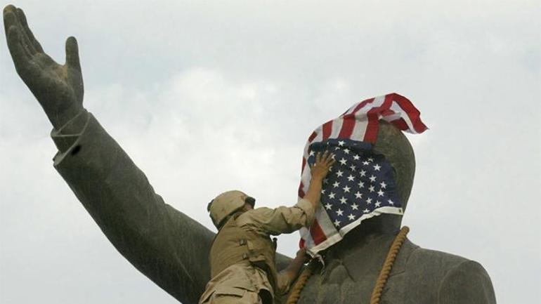 ABD askerlerinin BaÄŸdat’taki Firdevs Meydanında bulunan Saddam Hüseyin heykelini devirmesi Irak iÅŸgalinin sembollerinden biri oldu