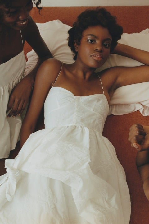 Nadine Ijewere’in kadraja aldığı, kız kardeşlik ve giyinme temalı lookbook kareleri, hayatta en ihtiyacımız olan kavramlardan birine oldukça profesyonel bir noktadan odaklanıyor. Koleksiyona daha yakından baktığımızda ise fiyonkların farklı formlarda birçok tasarımda anahtar görevi gördüğünü anlıyoruz. Tıpkı arkadaşlık gibi. Hacimli formlarda ve siyah, beyaz, pembe gibi renklerde hayat bulan tasarımlarda fiyonk detayı odakta. Bu fiyonklara bazen sırtta, bazen kollarda, bazen ise kelimenin tam anlamıyla her yerde rastlıyoruz. Romantik kişilikli tasarımlar, sezonun dünyasını dopaminle eşleştirirken zamansızlığı elden bırakmıyor.