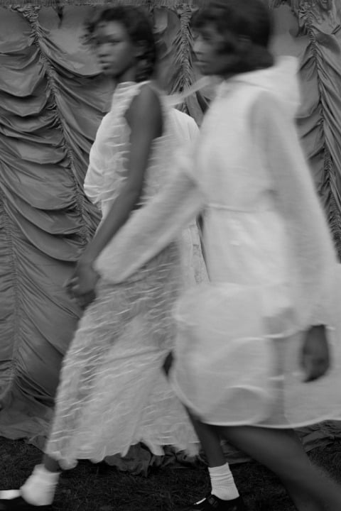 En iyi çıktığımız karelerde yanımızda genellike kim oluyor? Tabii ki en yakın arkadaşlarımız. Kendine has atmosferlerde, kız arkadaşlarla çekilen karelerin insana olumlu duyguları hissettirmeme ihtimali oldukça düşük. Danimarka’nın lüks ve couture arasında ince bir çizgi ören tasarım markası Cecilie Bahnsen, Pre-Fall 2026 koleksiyonunda bu iddiamızı doğrular nitelikte sahneler çalışmış. Belki de markasını henüz 10 yaşındayken global çapta tanınır hale getiren de budur. Hayattaki özel ve güzel anları karelerine taşımaktan hiç çekinmemesi. Tabii bu sembolizmin yanında, kurucu ve kreatif direktör Cecilie Frost Bahnsen’in fiyonklara karşı özel bir ilgisinin olduğu da kesin.