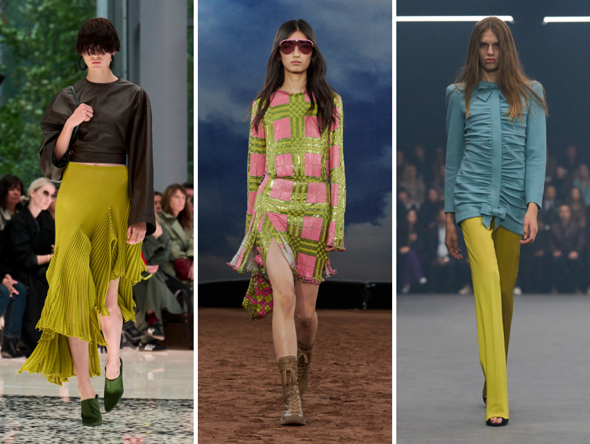 Renk bloklama göz korkutabiliyor. Fakat aslında oldukça basit. Tek bir güçlü parçayla başlamak yeterli. Mesela renkli bir etek ya da ceket. Geri kalan her şeyi sade tutabilirsiniz. Bu, özellikle daha minimal giyinenler için iyi bir başlangıç. Bir diğer kolay yol: Alışık olduğunuz parçaları renkle güncellemek. Çizgili bir gömlekle canlı bir etek ya da basit bir elbiseye eklenen renkli bir aksesuar gibi. Bazen tek bir detay bile görünümü değiştiriyor. Örneğin Prada defilesinde olduğu gibi, eldiven gibi küçük ama dikkat çeken bir parça eklemek bile yeterli. Aynı şekilde güçlü bir ceket ya da dikkat çeken bir parça da tüm görünümü taşıyabilir. Loewe’nin canlı yeşil deri ceketi bunun iyi bir örneği.