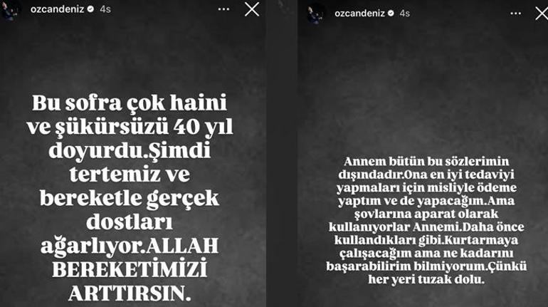 Özcan Deniz’in kanserle mücadele eden annesi Kadriye Deniz, 30 Aralık’ta hastaneye kaldırılmıştı. Gürler, “Dayan annem” notuyla annesinin hastaneye götürüldüğü anları paylaşmıştı.