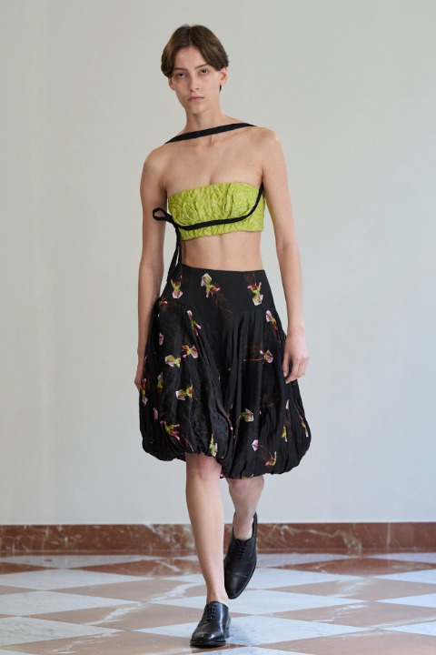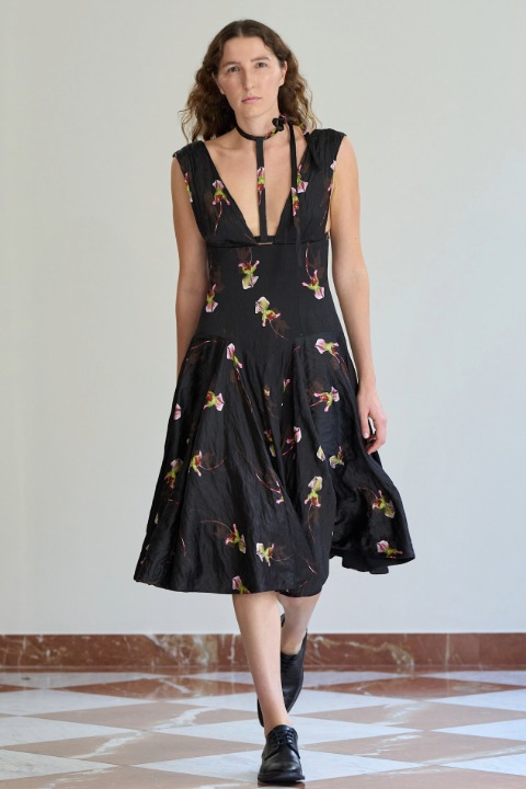 Zarif tasarımlarıyla her zaman feminenliğin sağlıklı gücünü ortaya koyan Emilia Wickstead, İlkbahar/Yaz 2026 şovunda geometrinin ve çiçeklerin etkisinden yararlandı. Sakinlikten uzak ancak gürültü yaratmayan görünümleriyle ise bize marka adına yeni bir perspektif sundu da diyebiliriz.