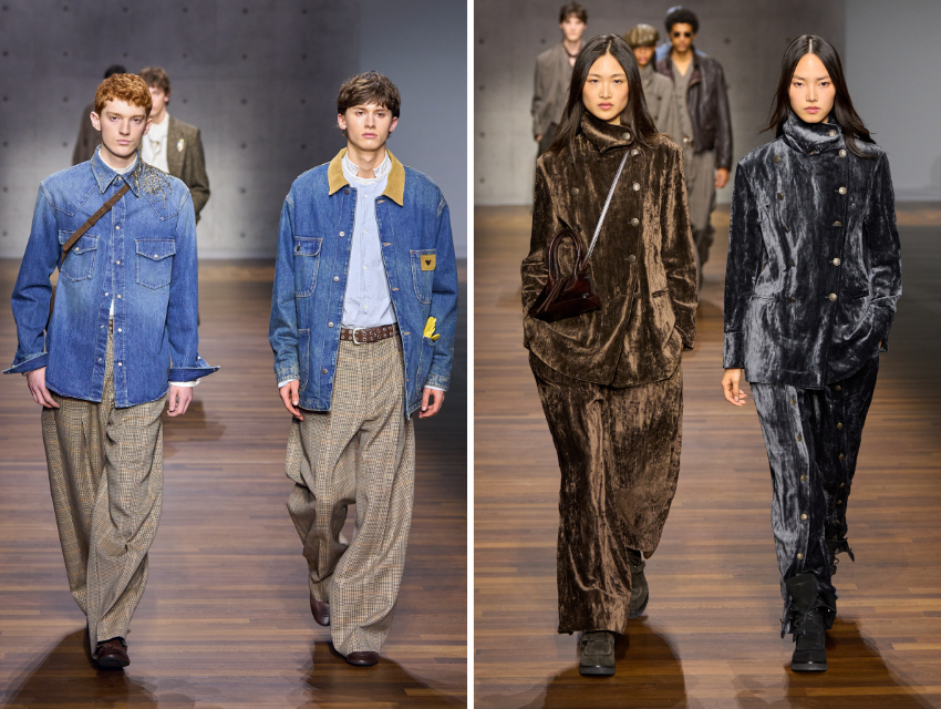Koleksiyon, dış giyim üzerinden güçlü bir çerçeve çizdi. Uzun paltolar, trençkotlar, bornoz formunda mantolar ve tüylü montlar yan yana geldi. Oversize beyaz gömlekler yuvarlak, sivri ya da fiyonklu yakalarla çeşitlendi. Smokin ceketleri ve kuyruklu takımlar daha rahat kesim pantolonlarla dengelendi.